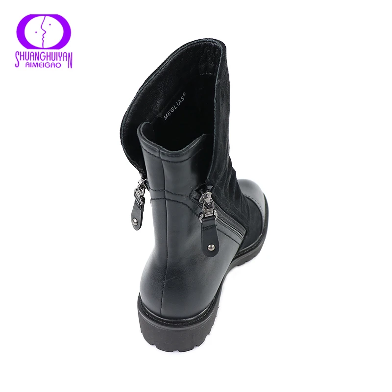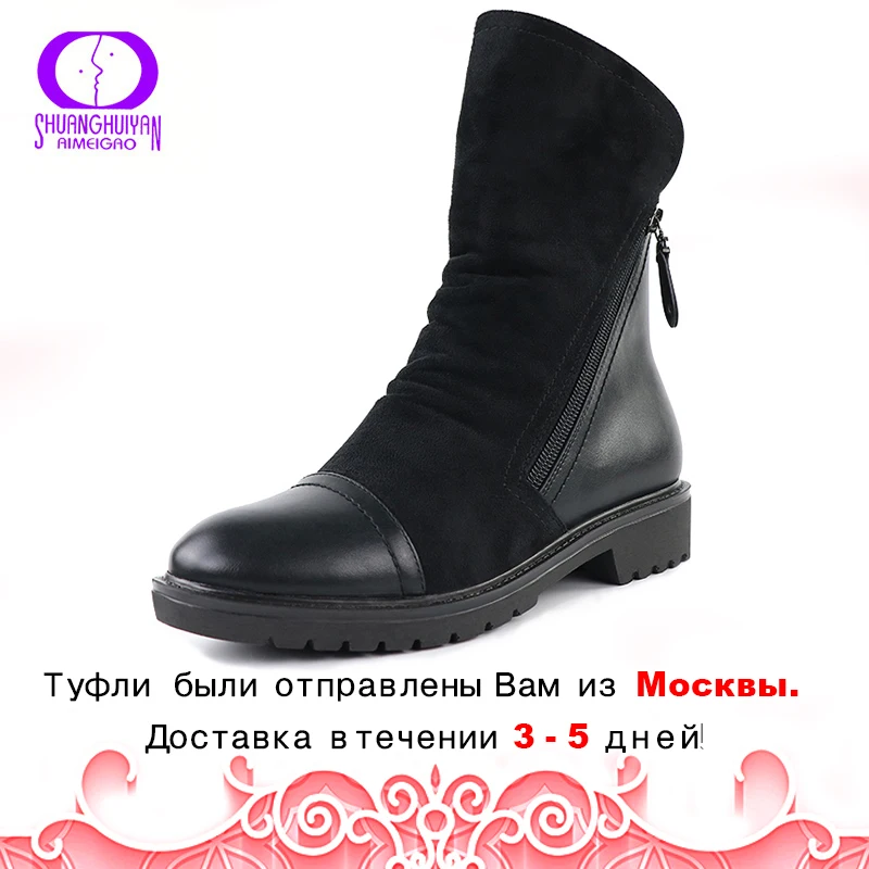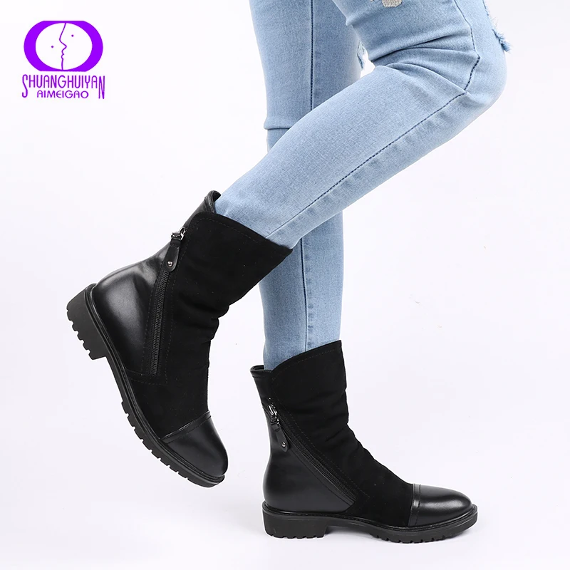 Special Offer AIMEIGAO botas de tobillo de alta calidad gamuza suave cuero mujeres botas de doble cremallera de felpa corta primavera otoño botas zapatos de talla grande Discount 45% Today!
