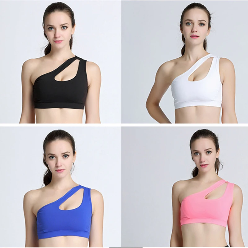 Special Offer Un hombro sólida superior deportes Fitness Mujer sexi Yoga sujetadores gimnasio acolchado deporte superior Athletic ropa interior de entrenamiento ropa de Running Discount 45% Today!