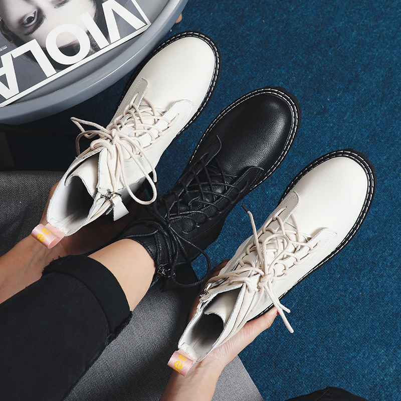 Special Offer Botas AIYUQI Martin para mujer 2019 otoño nuevas botas de cuero genuino para mujer con encaje blanco talla grande para mujer Discount 46% Today!