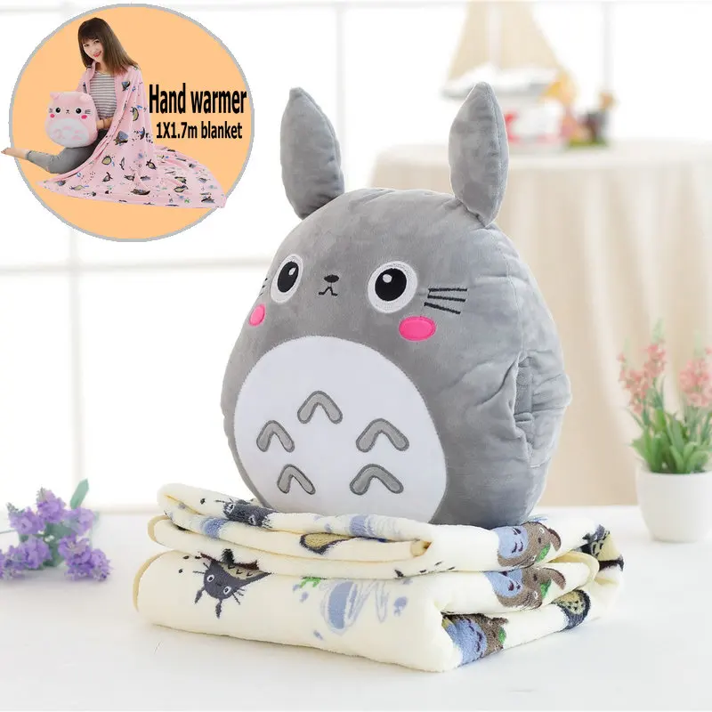 Special Offer Japón Totoro almohada de felpa con manta de franela suave rellena juguetes de peluche calentador de mano para niños cojín de dormitorio para novia Discount 5% Today!