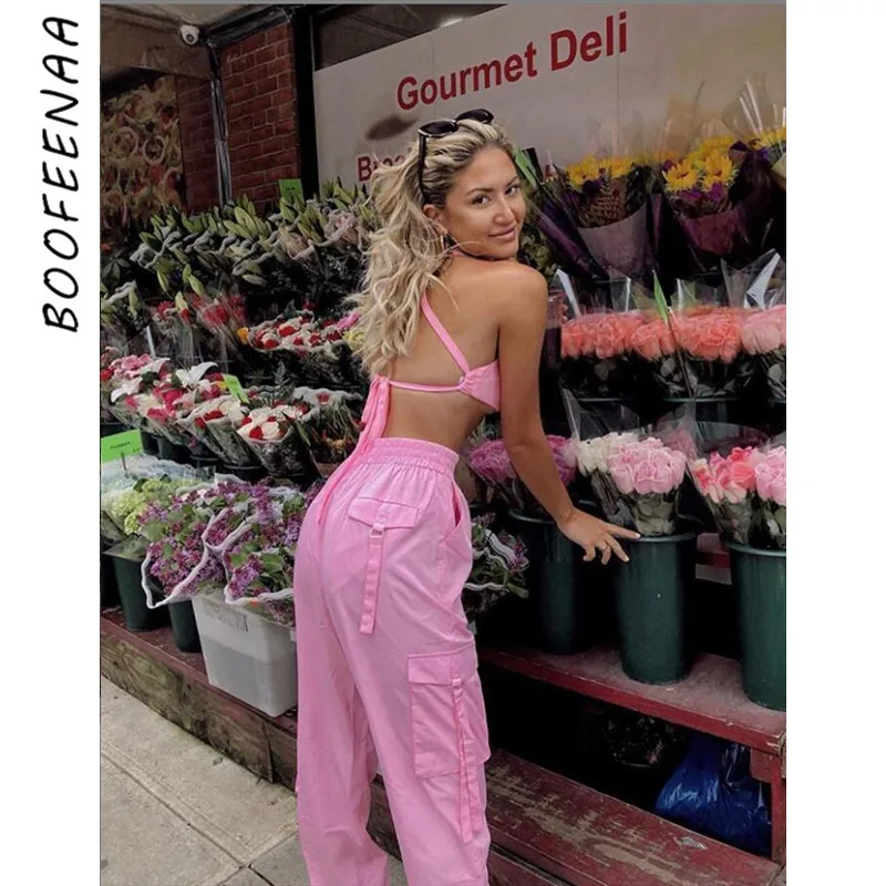 Special Offer BOOFEENAA Rosa Sexy conjunto de dos piezas Crop Top y Cargo Pants Suits Streetwear chándal mujer ropa de verano conjuntos a juego c68a64 Discount 50% Today!