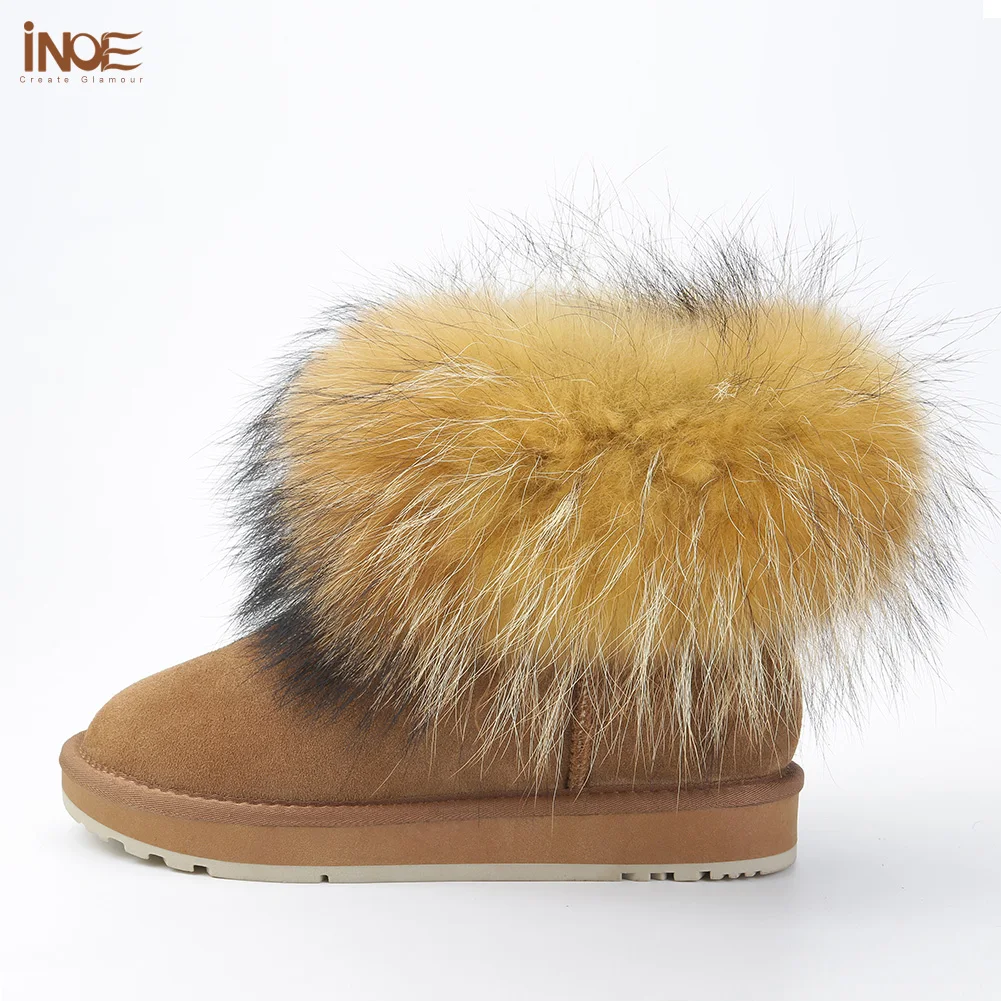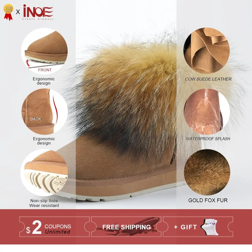 Special Offer Botas de invierno cortas de piel de zorro de ante de cuero de vaca de moda para mujeres botas de nieve de tobillo para mujeres mantener los zapatos calientes negro marrón Discount 52% Today!