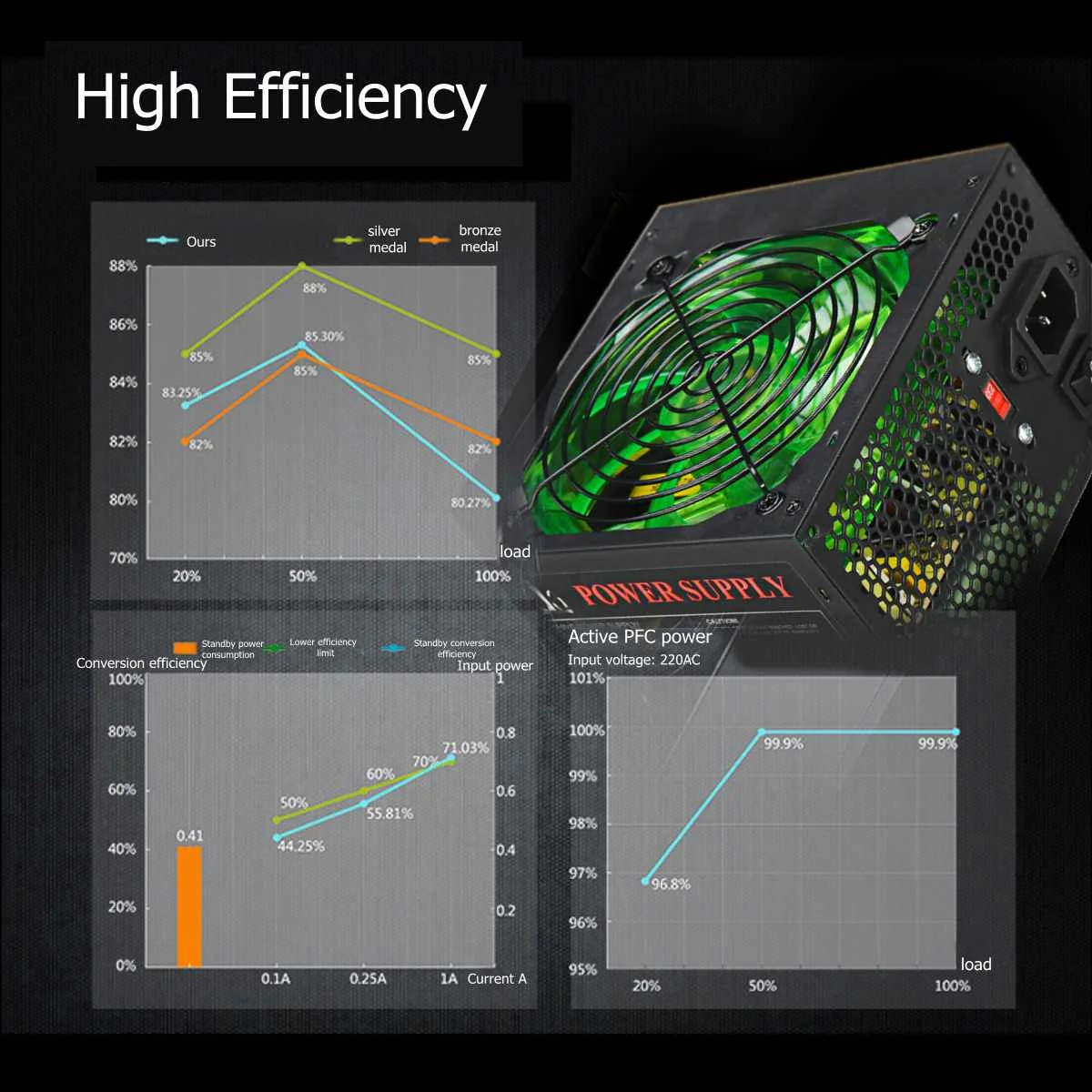 Special Offer Fuente de alimentación 800W 110 ~ 220V ventilador silencioso LED de 12cm con control de temperatura inteligente Intel AMD ATX 12V para ordenador de escritorio Discount 23% Today!