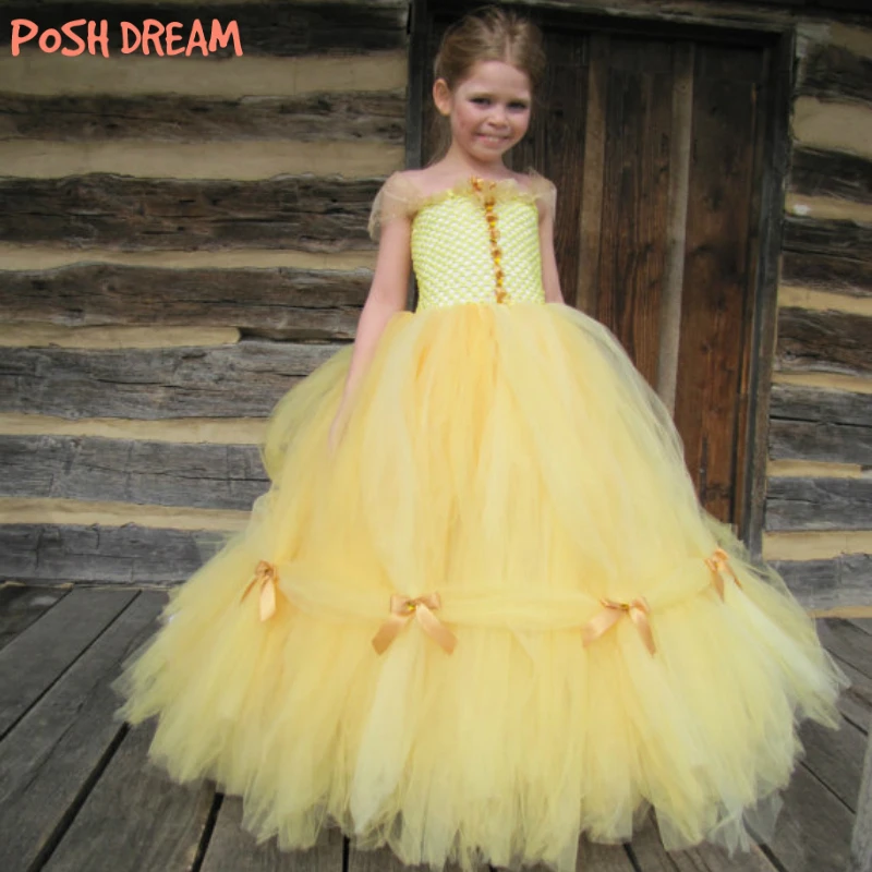Special Offer Elegante sueño La Bella y La Bestia bella princesa niñas disfraz Cosplay amarillo oro bella princesa niños niñas tutú vestidos Discount 25% Today!