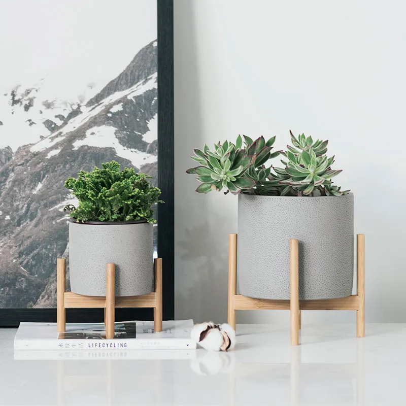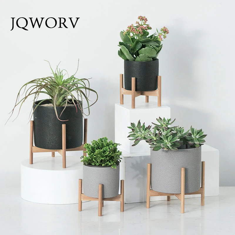 Special Offer JQWORV escritorio nórdico de madera sólida flor soporte cemento flor carnosa olla creativa simple sala de estar balcón montaje maceta de flores Discount 31% Today!