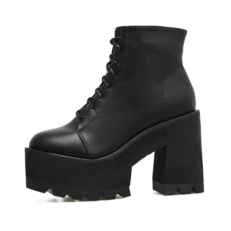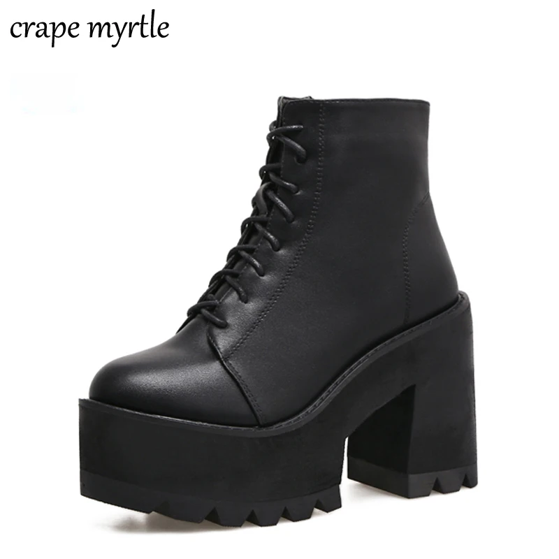 Special Offer Botas de encaje 2020 moda botas de tacón grueso botines de mujer tacones altos Otoño Invierno zapatos de mujer botas negras zapatos de plataforma YMA62 Discount 25% Today!