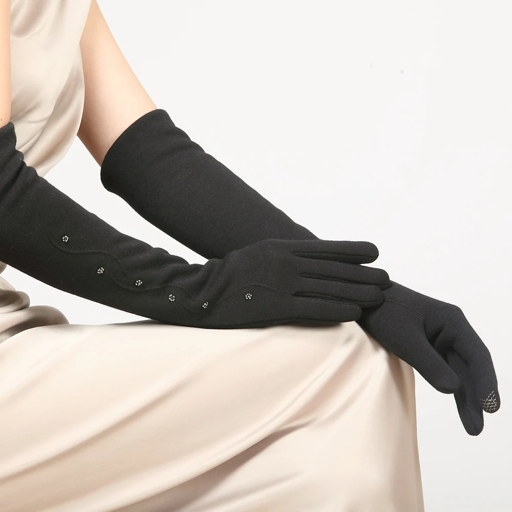 Special Offer Las mujeres no se caen hacia abajo guantes de terciopelo puño femenino largo invierno cinco dedos guantes de punto grueso caliente manga del brazo BL023N1 Discount 33% Today!