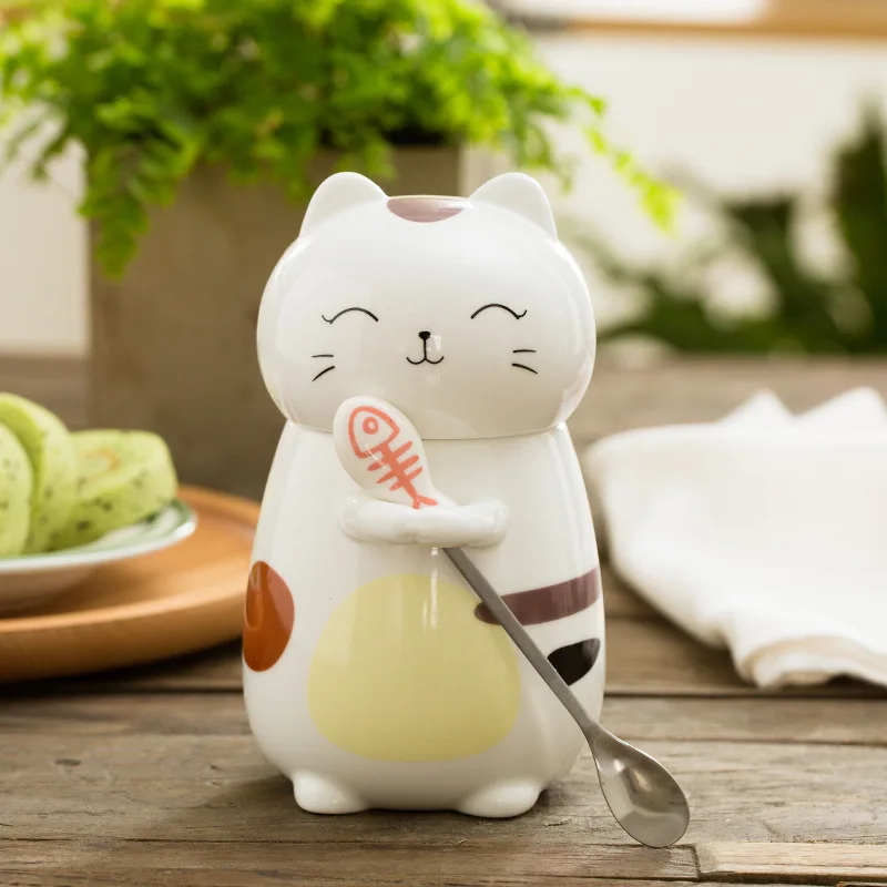 Special Offer Taza de café de cerámica de gato lindo con tapa de gran capacidad tazas de animales bebida creativa tazas de té de café regalos novedosos taza de leche Discount 35% Today!