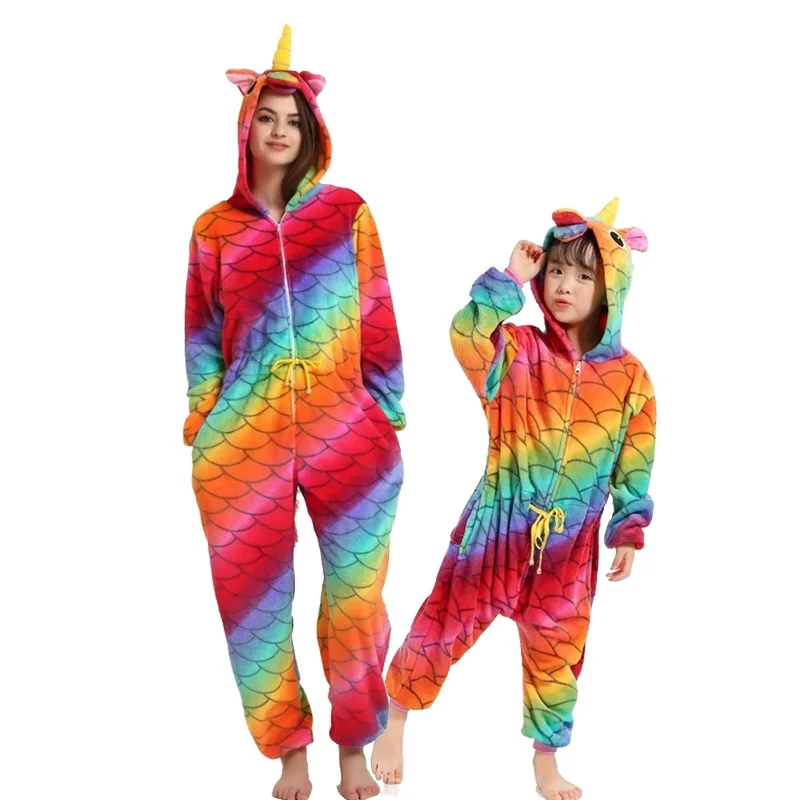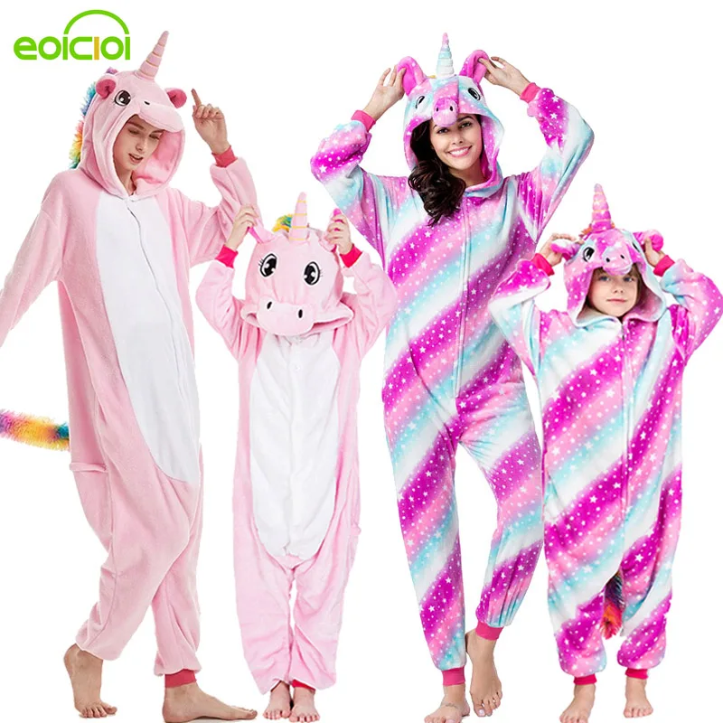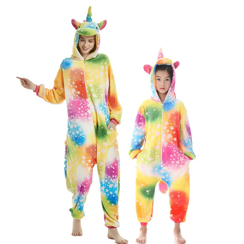 Special Offer 21 nuevas mujeres niños Animal Pegasus unicornio Stitch pijamas lindo conjunto a juego familiar invierno familia ropa de dormir madre niños Pijamas Discount 40% Today!