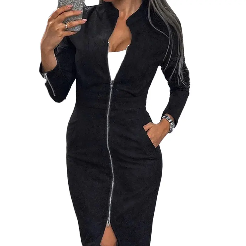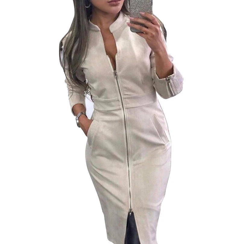 Special Offer MVGIRLRU mujer manga larga vaina Bodycon vestido Midi de cintura alta con bolsillos Mujer fiesta de vestidos Discount 40% Today!