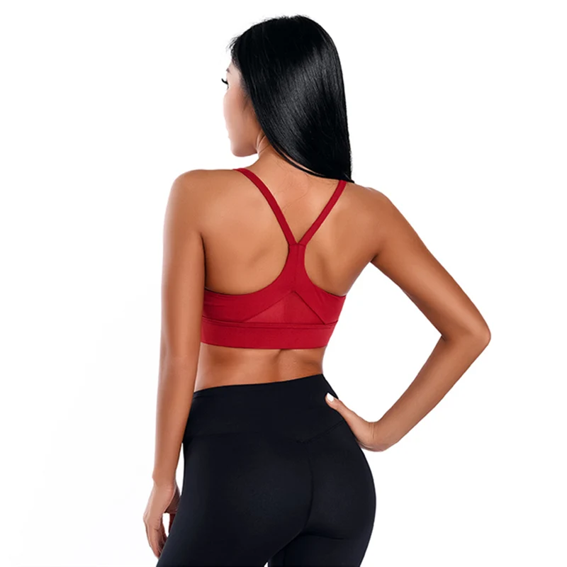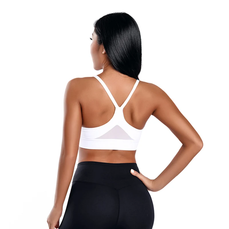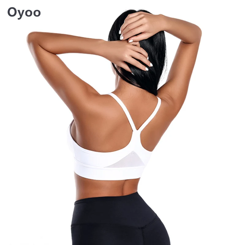 Special Offer Oyoo Shakeproof Sujetador deportivo de alto impacto Sexy malla Patchwork gimnasio Fitness Crop superior ropa deportiva blanca para mujeres Discount 40% Today!