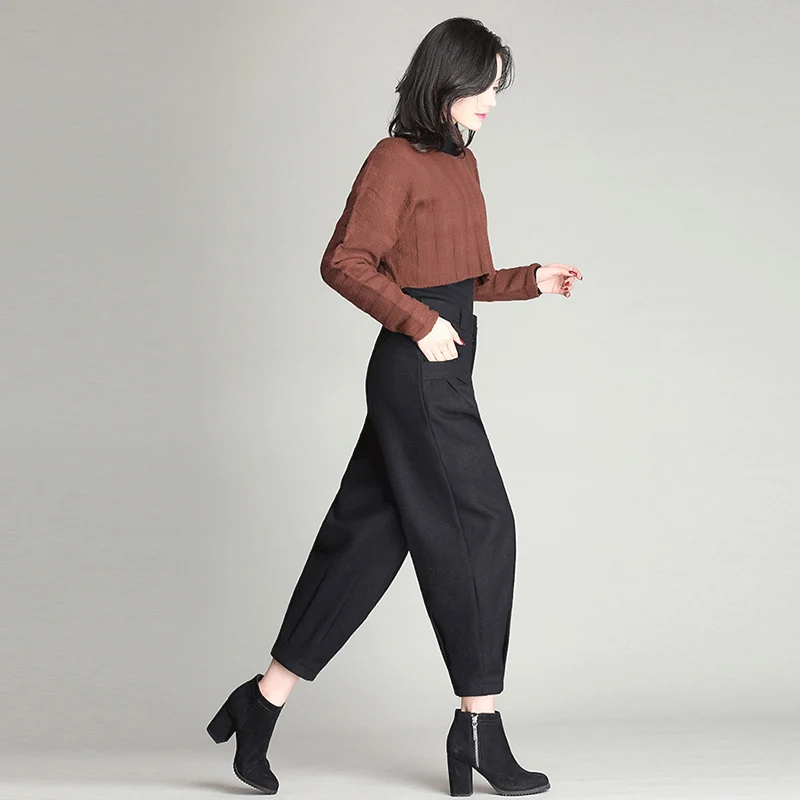 Special Offer LOMAIYI cálido otoño invierno pantalones de pierna ancha para mujer Pantalones Harem sueltos pantalones de oficina de cintura alta Mujer Pantalones señora BW045 Discount 41% Today!