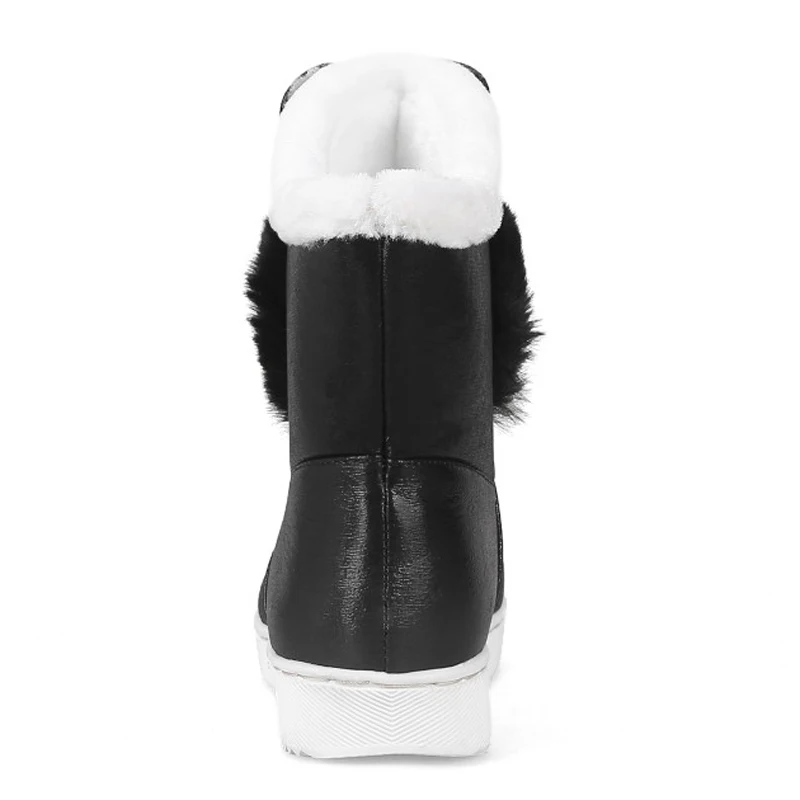 Special Offer Botas de nieve de cuero de imitación para mujer invierno A365 planas largas de felpa para mujer zapatos de tobillo de piel de imitación de cristal dorado negro plateado para mujer Discount 49% Today!