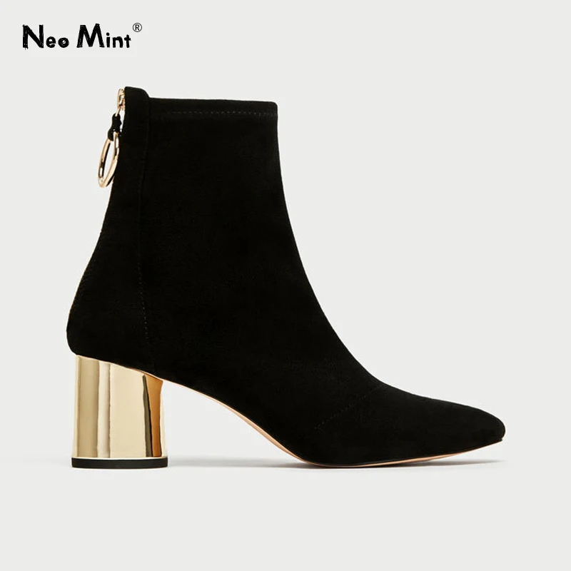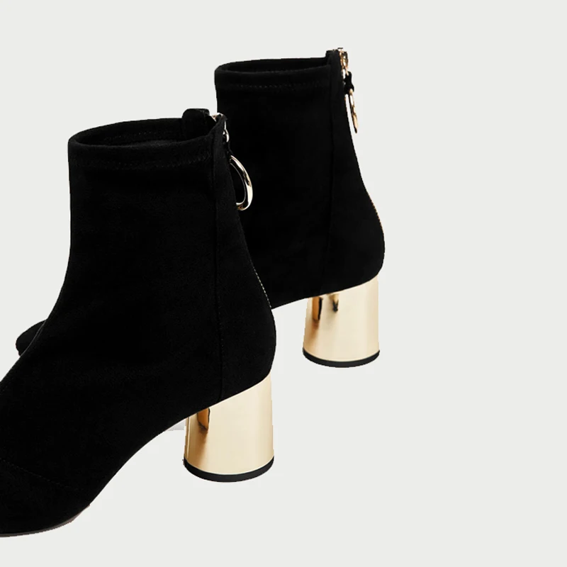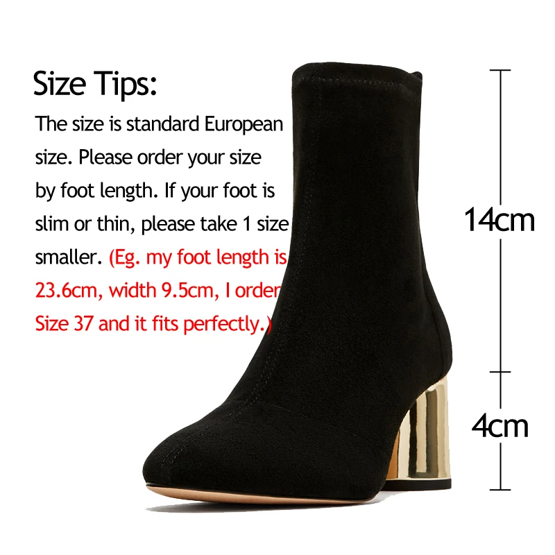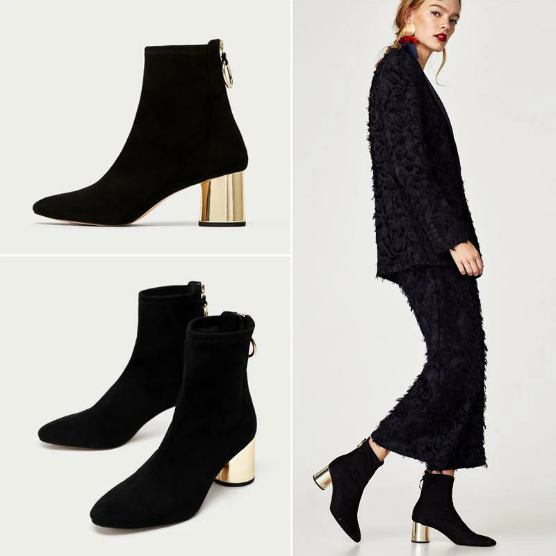 Special Offer Botas de calcetín de tejido elástico otoño 2019 botas de mujer de anillo dorado 6cm tacones gruesos botines de Mujer Zapatos de gamuza botines de mujer Discount 50% Today!