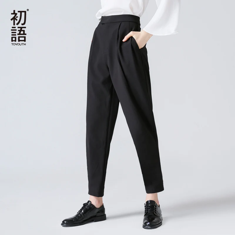 Special Offer Pantalones para mujeres Toyouth para mujeres con cintura alta pantalones negros invierno mujer Casual tobillo longitud moda Pantalones largos de oficina Discount 60% Today!