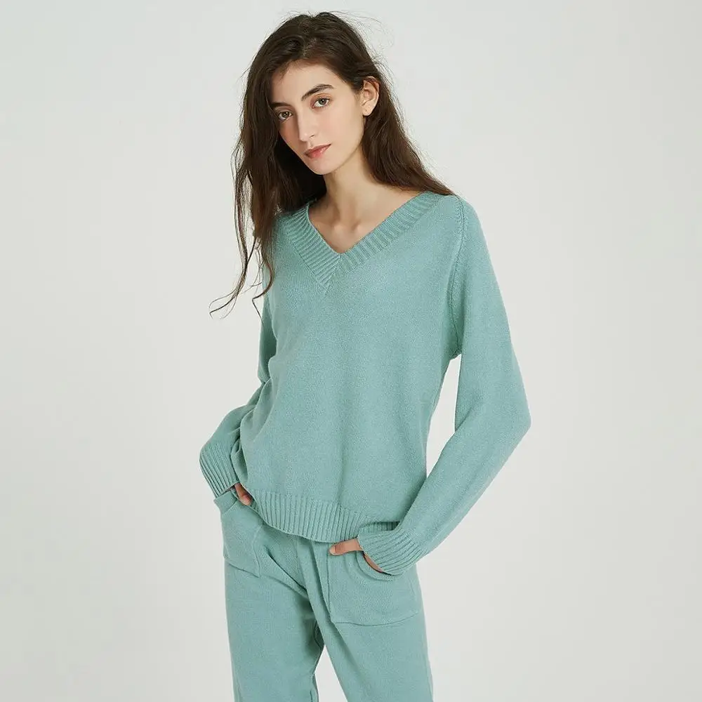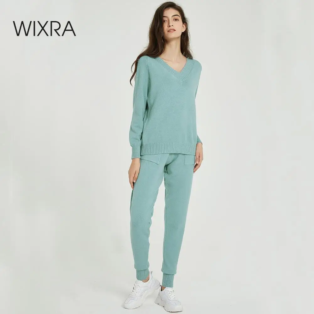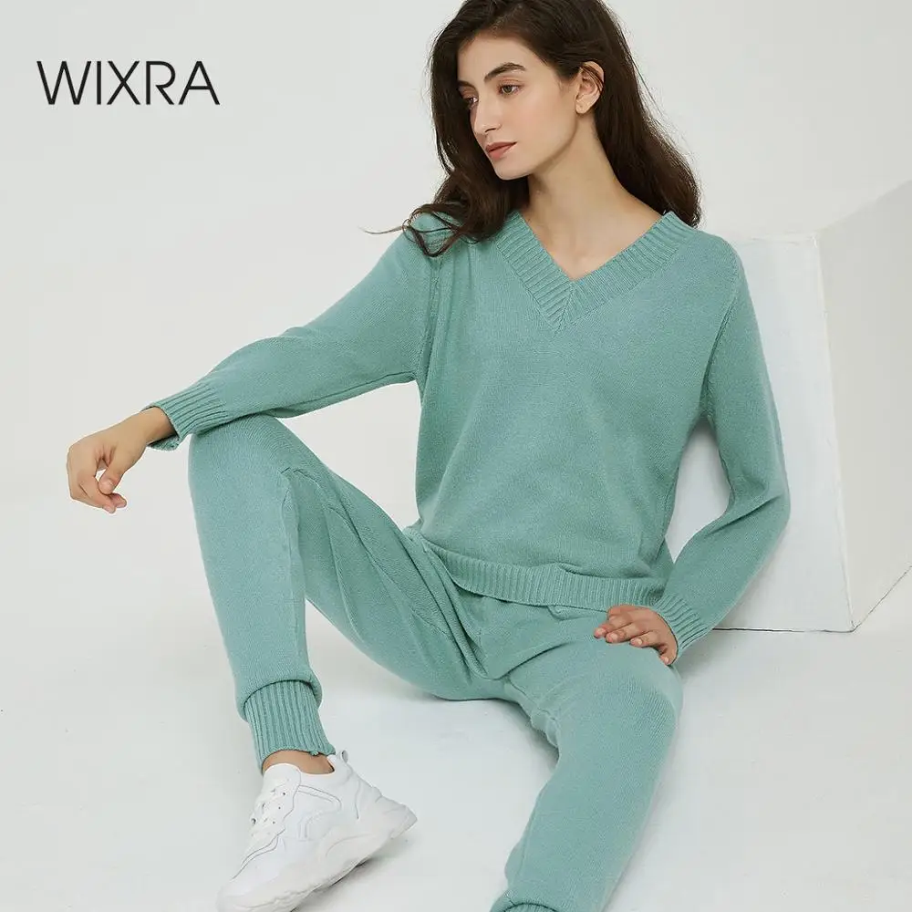 Special Offer Wixra suéter conjunto y conjuntos suéteres Casual cuello en V camisetas + bolsillos pantalones largos conjuntos de dos piezas sólidos 2019 Otoño Invierno Discount 60% Today!
