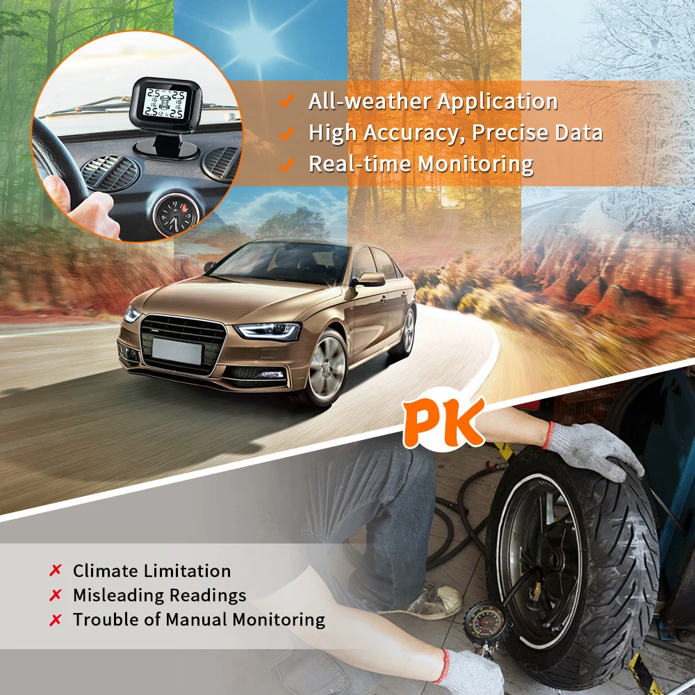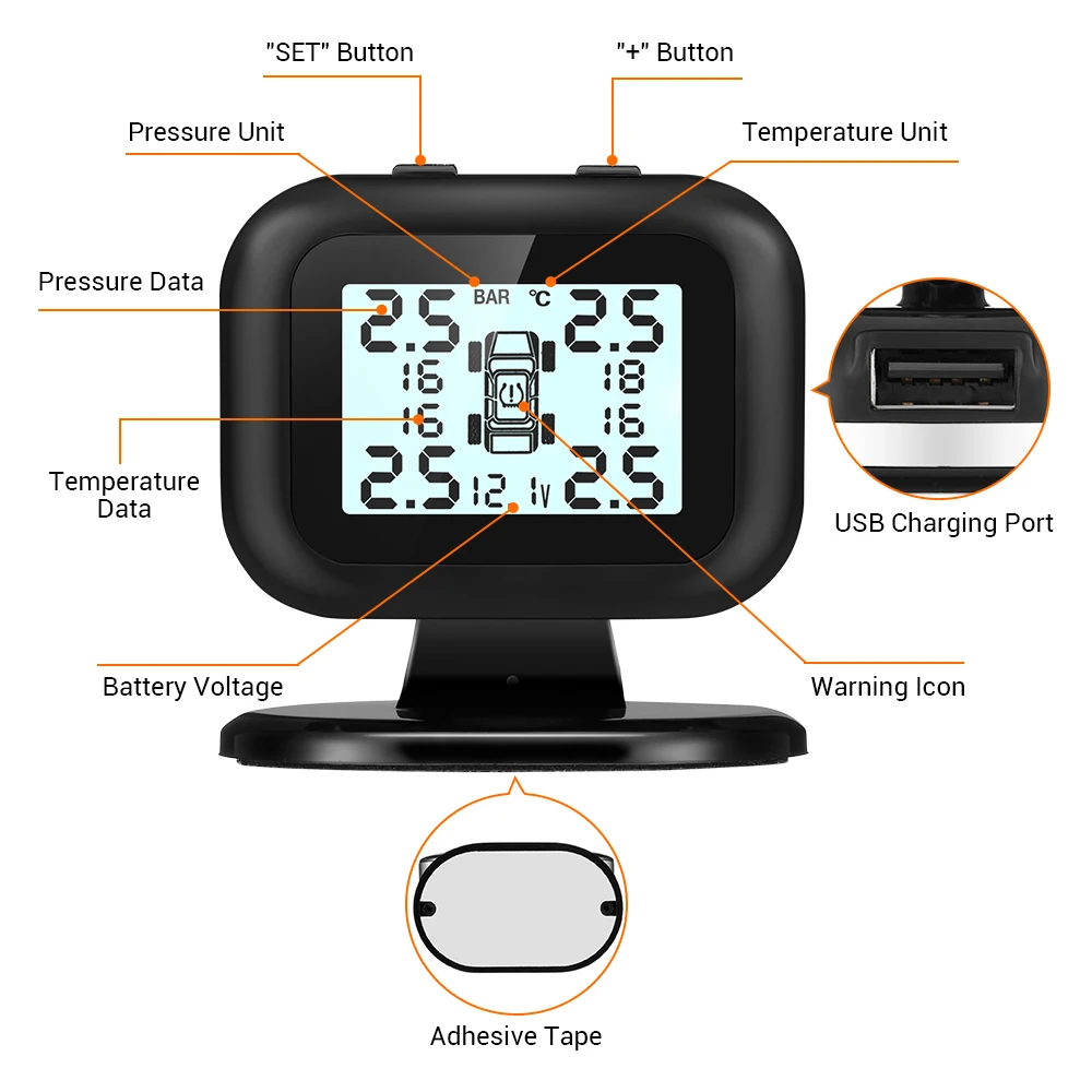 Special Offer Sistema de Monitoreo de presión de neumáticos de coche TPMS 5V Sensor externo ajuste pantalla LCD USB alarma de seguridad automática de neumáticos para vehículos todoterreno Discount 61% Today!