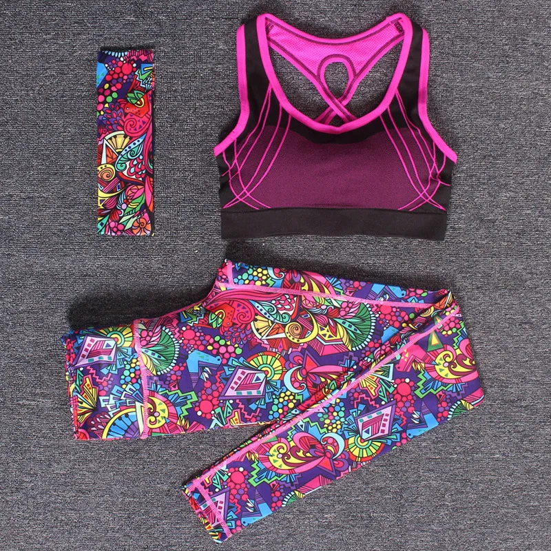 . (65% Off) Comprar Conjunto de Yoga para mujer, trajes deportivos de gimnasia, entrenamiento, ropa deportiva 3 unids set chándales diadema + sujetador + Pantalones de Yoga impresos Leggings deportivos Online Baratos.