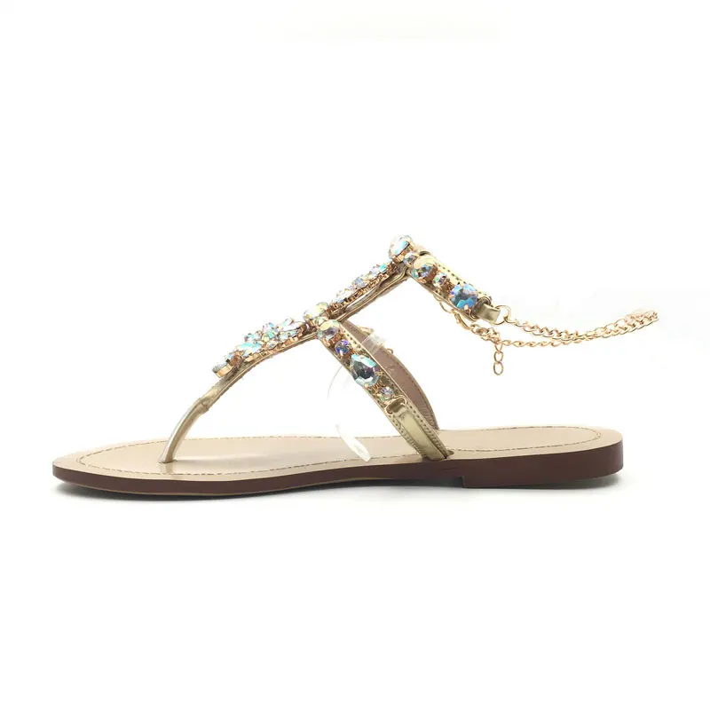 Special Offer HUALUN zapatos de tacón alto sandalias de mujer cadenas de diamantes de imitación Sandalias planas de talla grande Sandalias planas tipo gladiador Discount 0% Today!