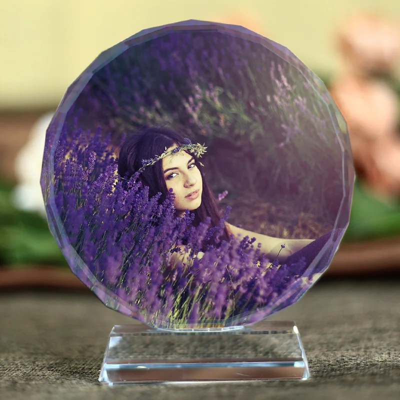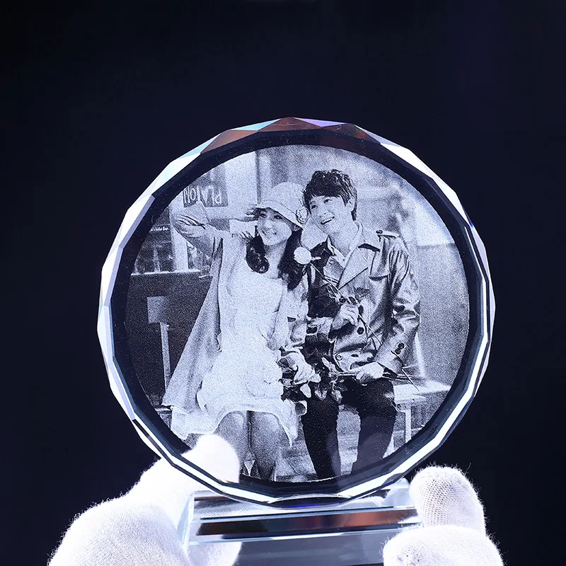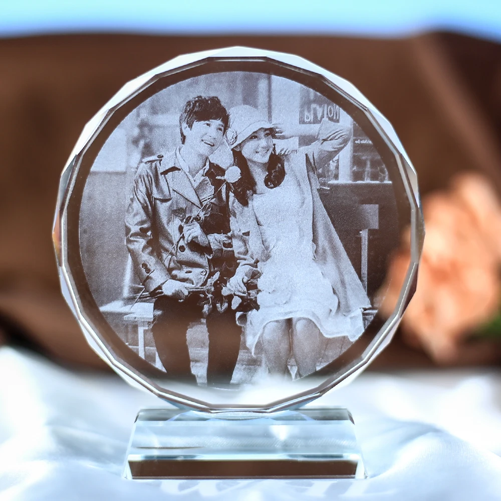 Special Offer Personalizado láser grabado cristal Fotos marco redondo familia boda foto álbum San Valentín aniversario marcos regalos Discount 20% Today!