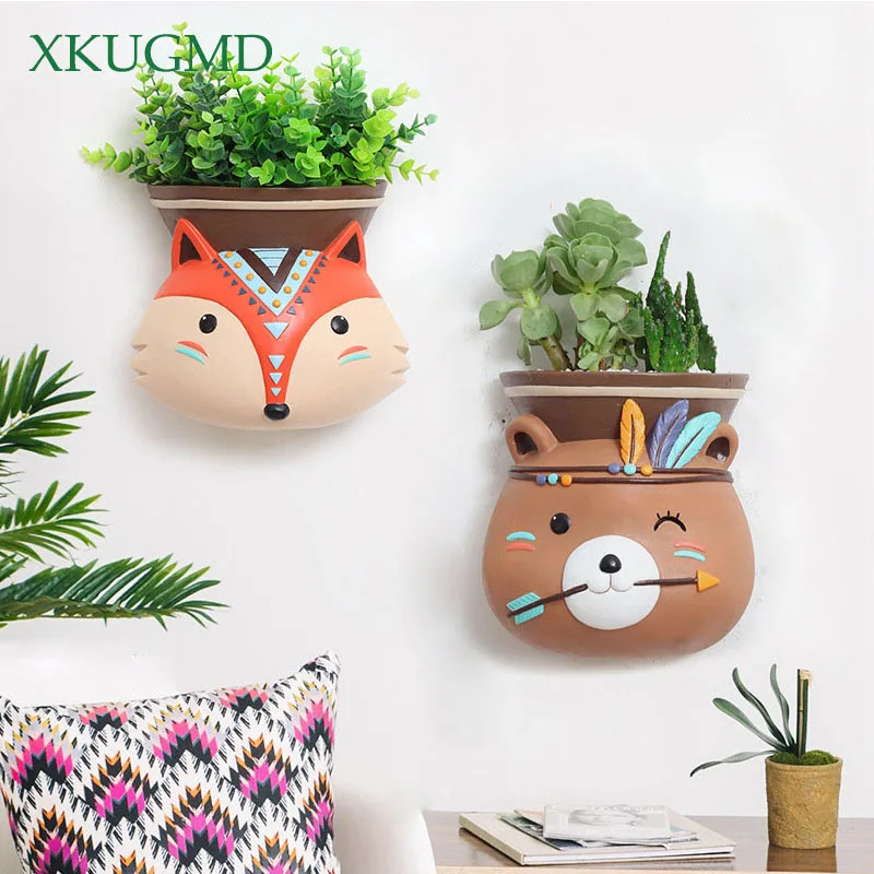Special Offer Creativo interior montado en la pared de animales macetas suculentas elefante búho zorro ciervo oso colgante jarrón decoración de la pared del hogar Discount 21% Today!