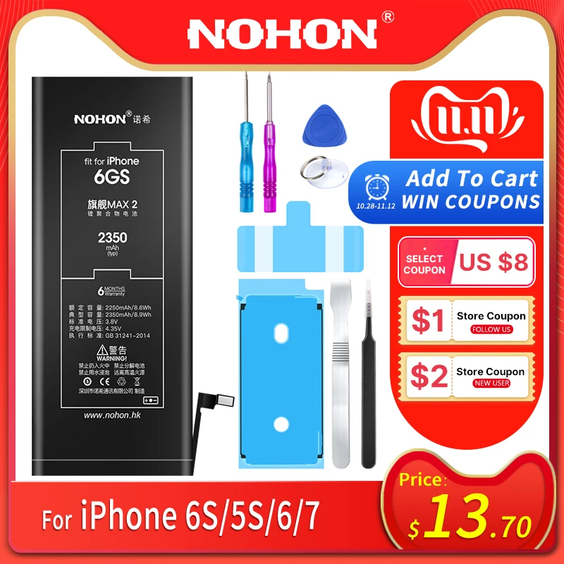 Special Offer Batería NOHON para iPhone 6S 5S 6 7 5C 6G 7G reemplazo de alta capacidad Bateria de polímero de litio baterías de teléfono móvil herramientas gratis Discount 30% Today!
