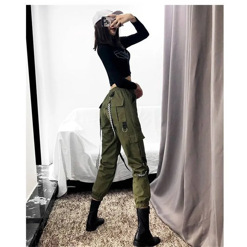 Special Offer Pantalones Cargo negros para mujer Pantalones deportivos de cintura alta sueltos para mujer Pantalones Hip Hop coreanos Punk pantalones divertidos Capri Streetwear mujeres Discount 30% Today!
