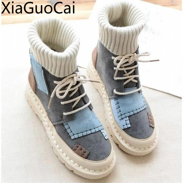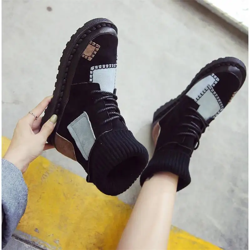 . (35% Off) Comprar Botas altas de otoño e invierno para mujer Nubuck Plus terciopelo cálido Casual zapatillas de punta redonda con cordones botas planas para estudiantes Online Baratos.