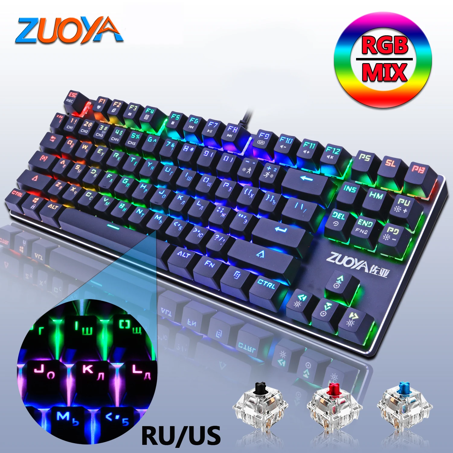 . (37% Off) Comprar Teclado mecánico para juegos Teclado retroiluminado interruptor rojo azul 87key LED Anti ghosting con cable USB Rusia EE. UU. Para ordenador portátil Gamer Online Baratos.