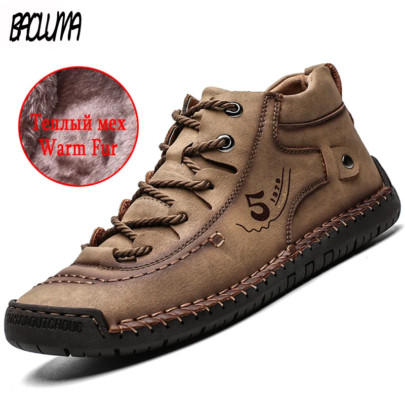 Special Offer Botas clásicas del tobillo de los hombres del invierno cómodas gruesas de La felpa abrigadas botas de la nieve del hombre del otoño del cuero partido botas de la motocicleta del hombre al aire libre Discount 39% Today!