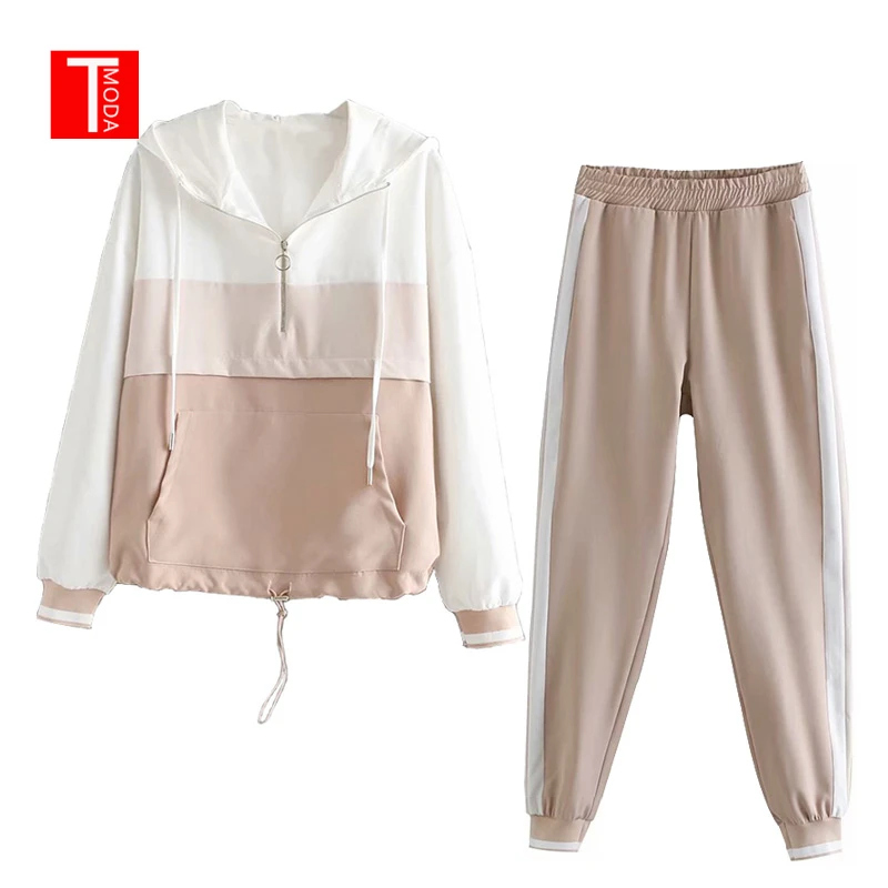 Special Offer Conjunto femenino Vintage rosa contraste Color béisbol bombardero chaqueta mujeres tapas y lápiz Jogging pantalones trajes conjuntos de dos piezas Discount 40% Today!
