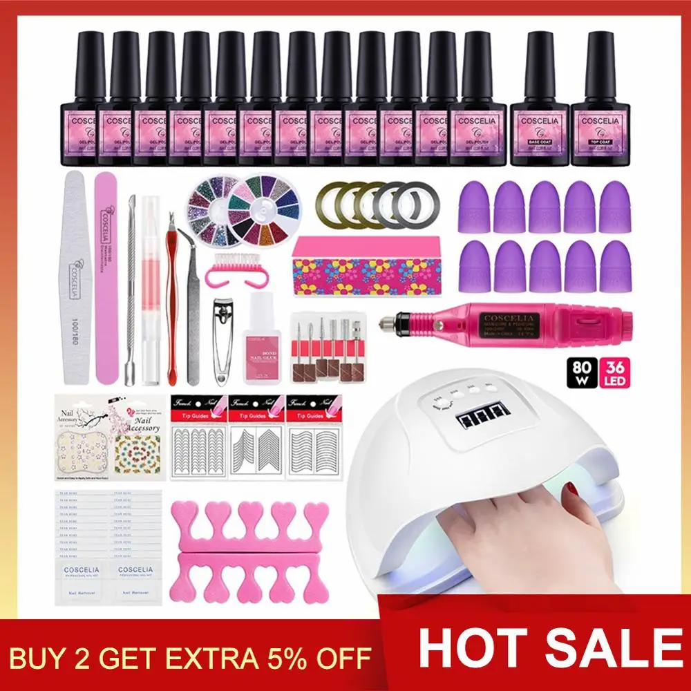 Special Offer Juego de manicura COSCELIA lámpara LED UV de 80W con Kit de esmalte de uñas de Gel de 12 piezas máquina de taladro eléctrico herramientas de arte de uñas para manicura Discount 40% Today!
