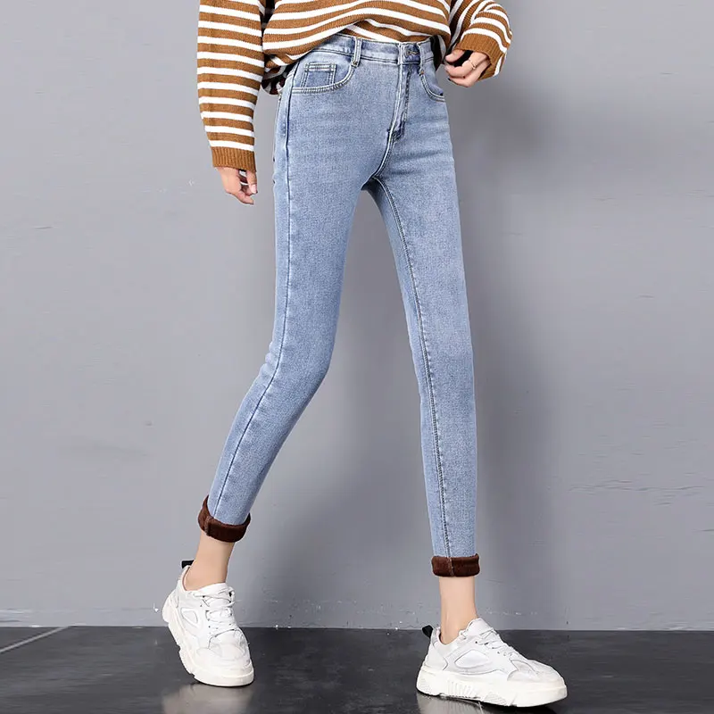 Special Offer Pantalones vaqueros de Invierno para mujer coreanos de cintura alta más pantalones vaqueros delgados de terciopelo para mujer 2019 nuevos vaqueros Streetwear gruesos calientes de invierno Discount 40% Today!