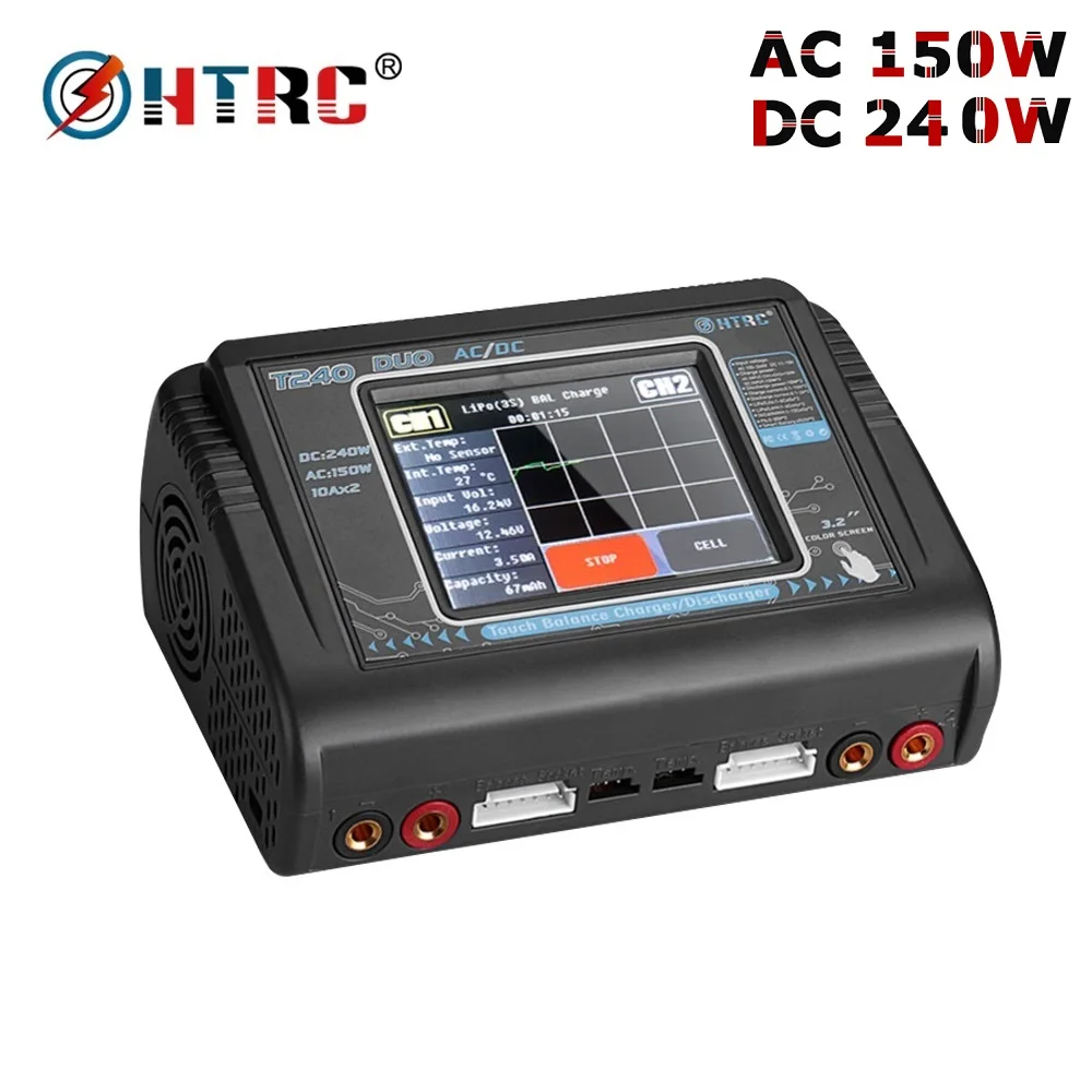 Special Offer HTRC T240 DUO AC 150 W CC 240W pantalla táctil de doble canal 10A RC cargador de equilibrio descargador para LiPo LiHV LiFe Lilon NiCd NiMh Pb Discount 41% Today!
