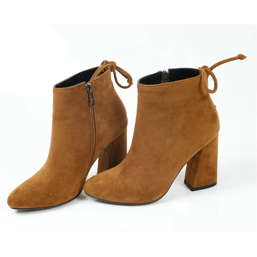 Special Offer ESVEVA 2020 botas de mujer Flock botines de punta redonda zapatos de invierno tacones cuadrados señoras fiesta occidental Suede botas de otoño tamaño 34 43 Discount 48% Today!