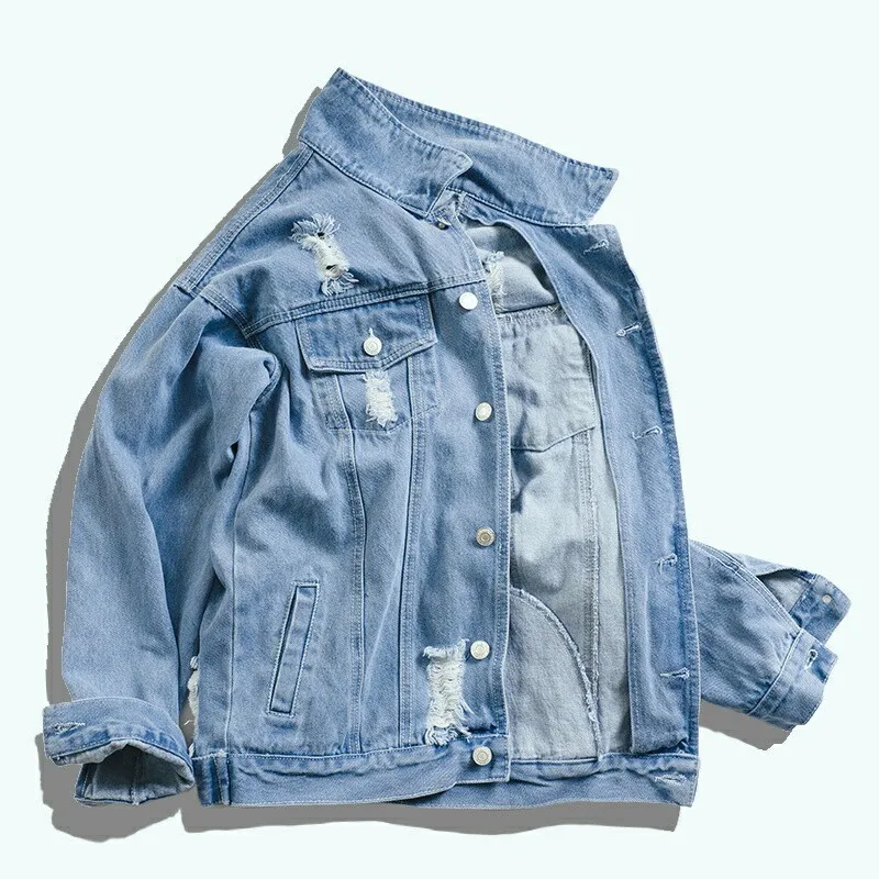 . (49% Off) Comprar ABOORUN chaqueta vaquera Hip Hop para hombre chaqueta vaquera con estampado de perro divertido y agujero roto chaqueta de Jean primavera otoño Streetwear para parejas YC1175 Online Baratos.