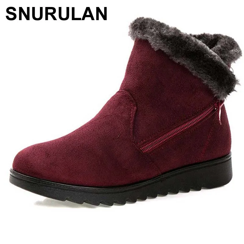 Special Offer Botas de nieve para mujer de SNURULAN cálidas de piel corta de felpa de invierno tobillo de talla grande de la Plataforma de las señoras Suede Zip zapatos femeninos cómodos E011 Discount 50% Today!