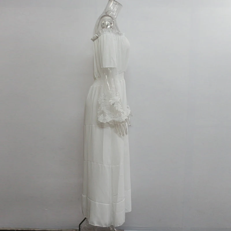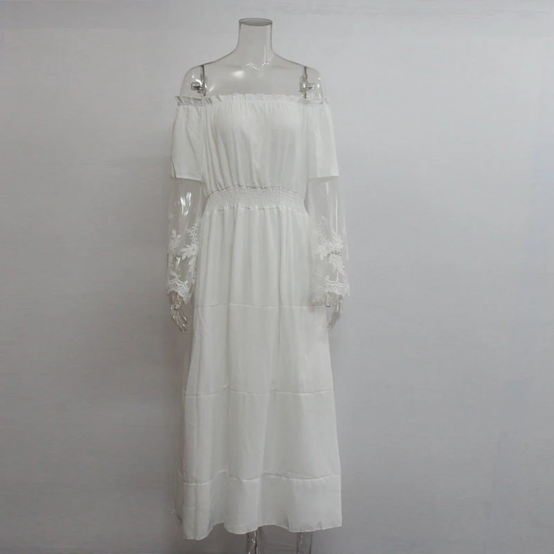 Special Offer UZZDSS verano vestido de verano largo mujer blanco sin tirantes Vestido de playa manga larga suelto Sexy fuera del hombro encaje Boho algodón Maxi vestido Discount 50% Today!