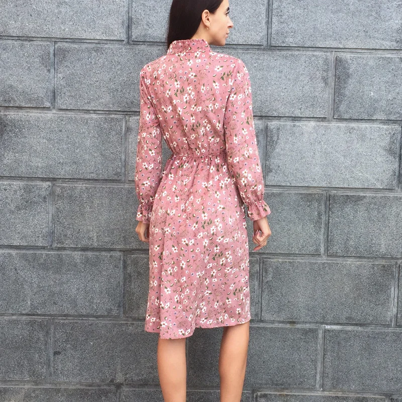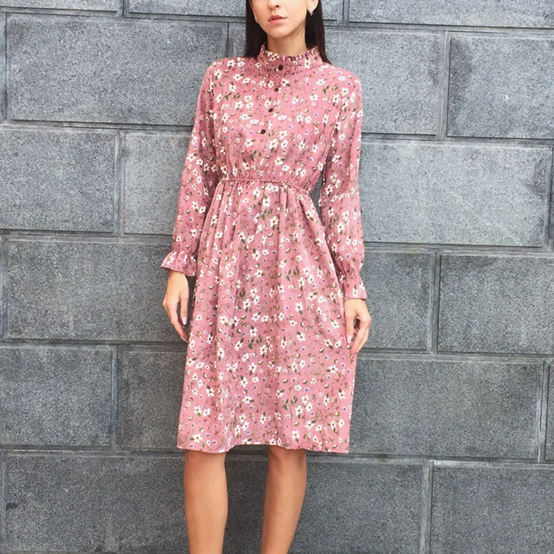 Special Offer BGTEEVER pana suave con estampado Floral para mujer Otoño Invierno vestido con cuello alto Vestidos de fiesta femeninos con cintura elástica Vestidos de playa Discount 51% Today!