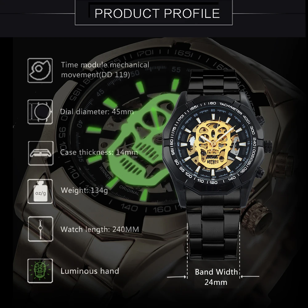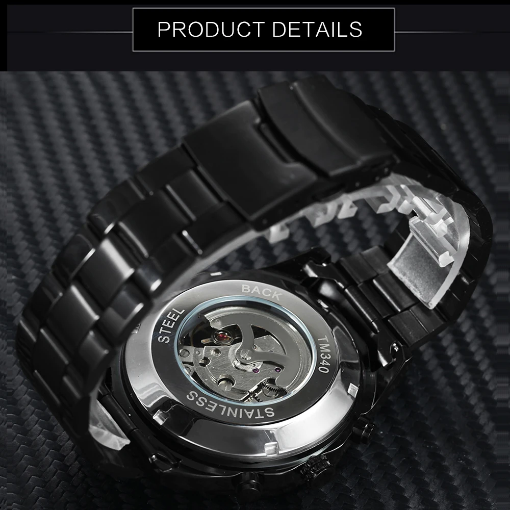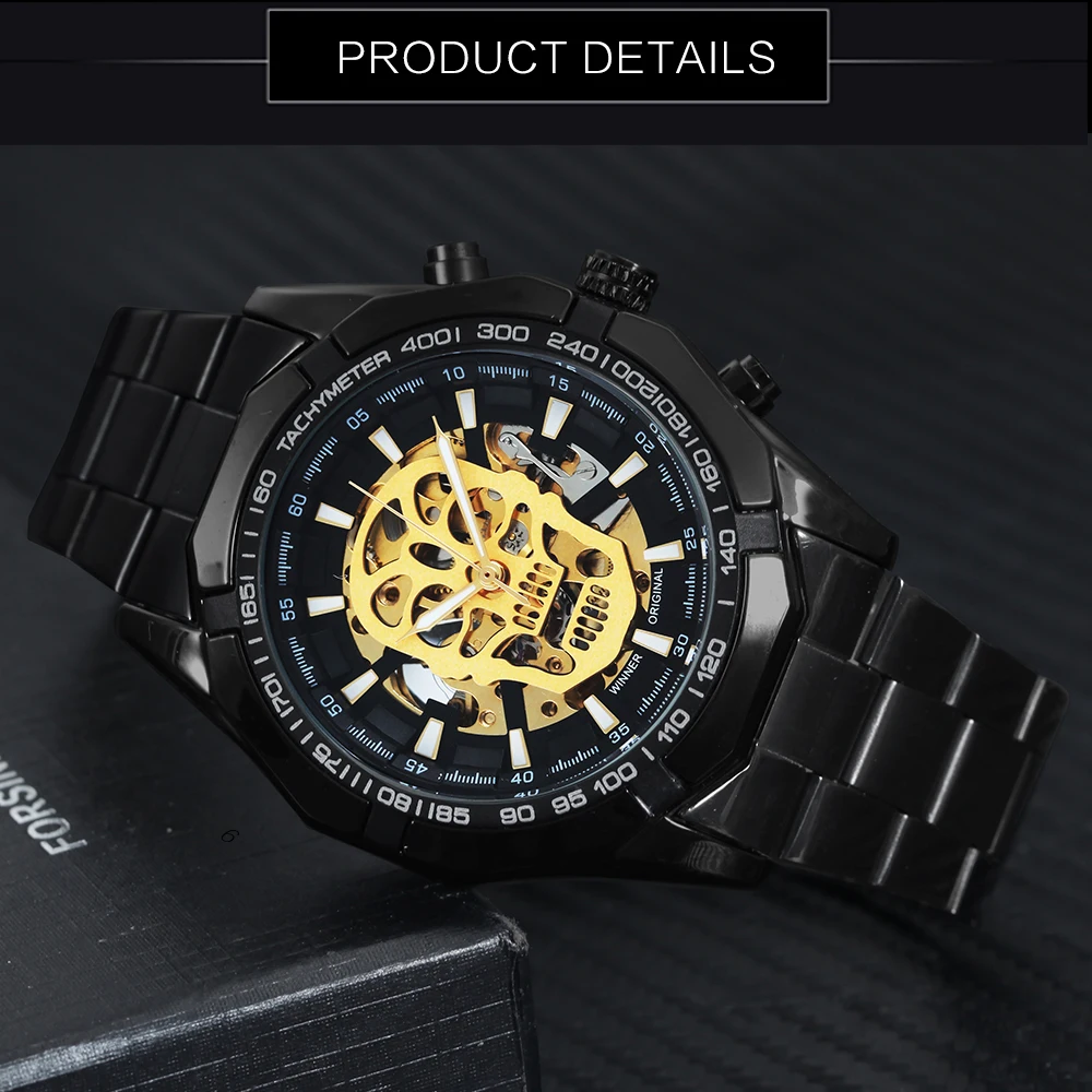 Special Offer Reloj mecánico automático con calavera Steampunk, ganador, correa de acero inoxidable negro para hombre, reloj de pulsera de diseño moderno con esfera esqueleto Discount 65% Today!