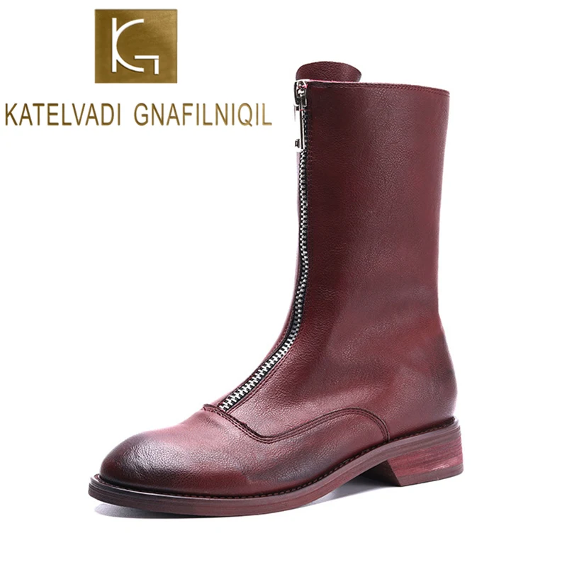 Special Offer Botas cortas de invierno katelvadio tacones cuadrados cremallera frontal corto forro de felpa moda negro PU cuero botines zapatos mujer K 519 Discount 50% Today!